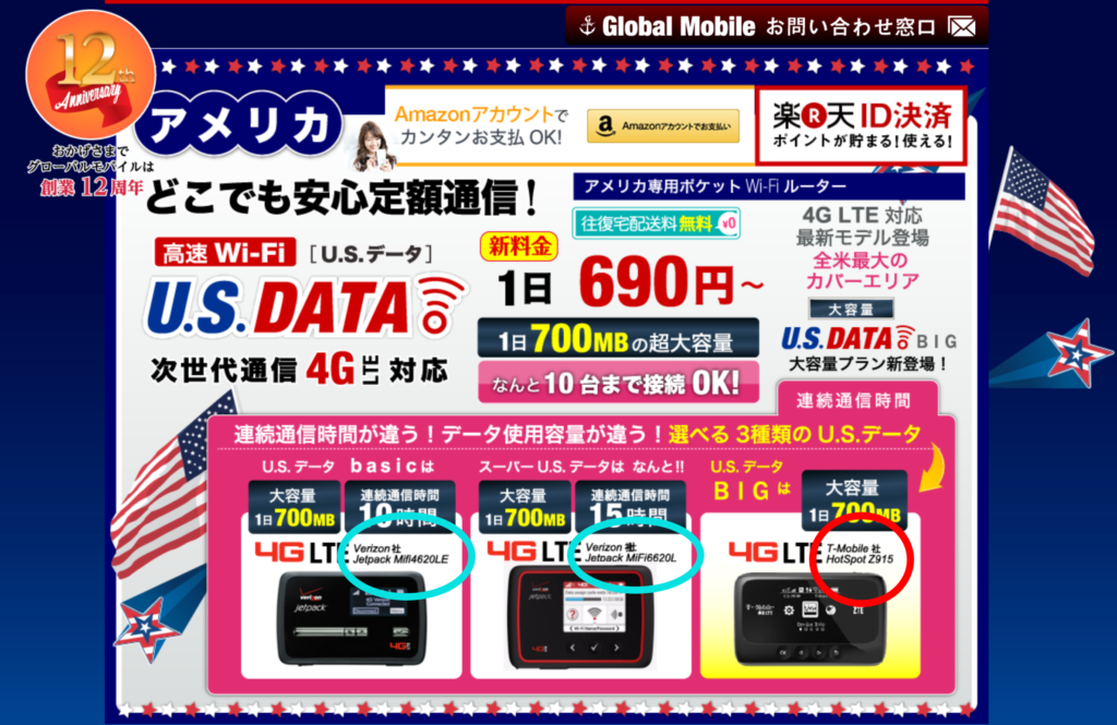 こちらのサイトはアメリカに特化したWiFi貸出サービスの会社です。