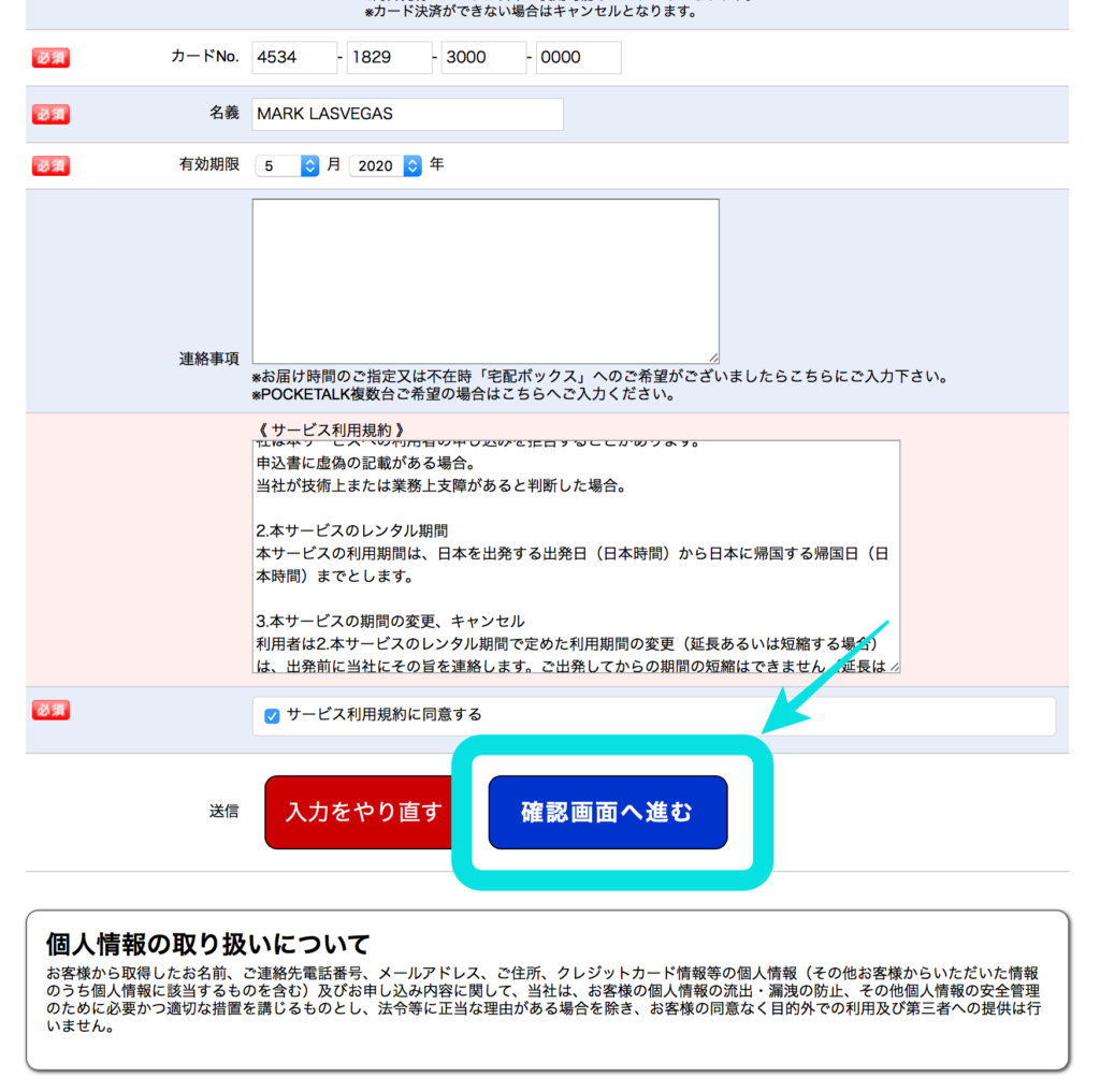 ここは頑張ってしっかり入力を\(^o^)/ できましたら確認画面へ進む。