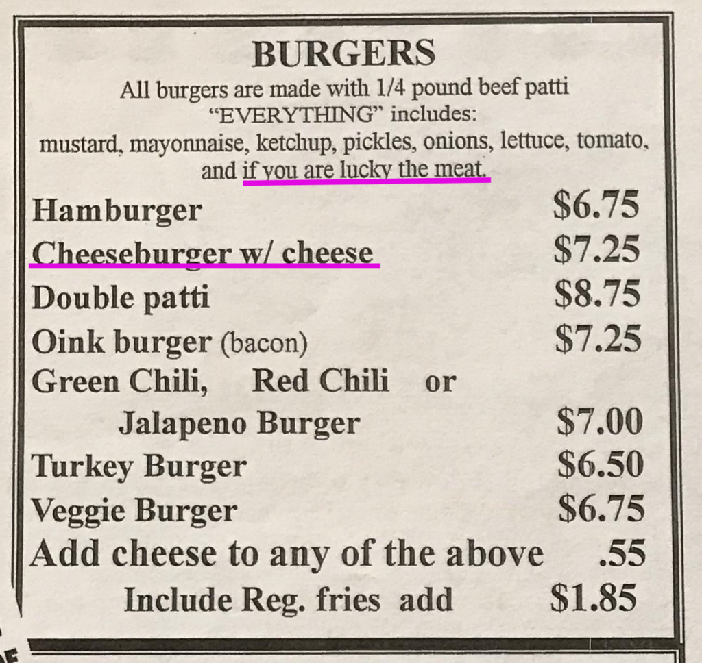 まず、ハンバーガー編なのですが、BURGERSの下に「もしあなたがラッキーであればお肉が入ってます。」