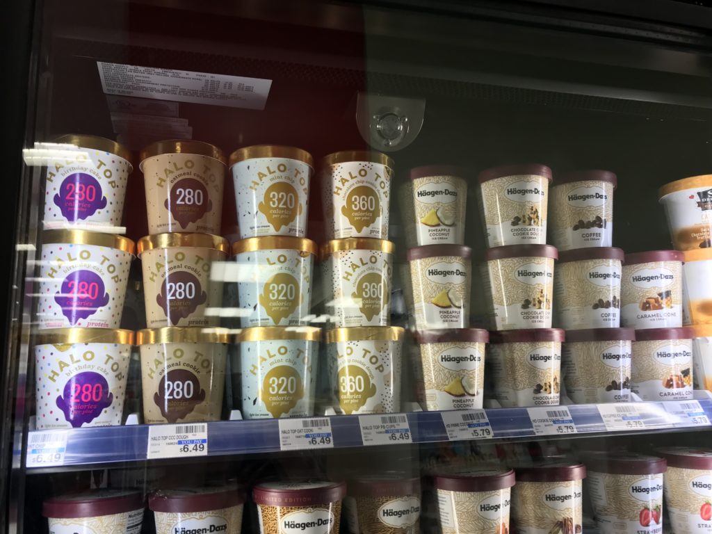 右側がハーゲンダッツ。左側がカロリー約半分のアイスクリーム。