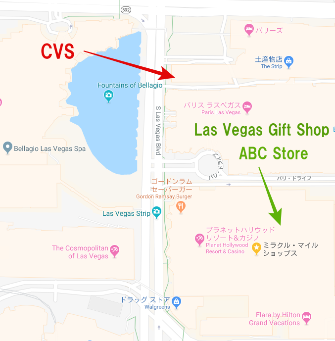 3店舗目はドラッグストアのCVS。パリスホテル、バリーズホテルの間にありアクセスがいいです。