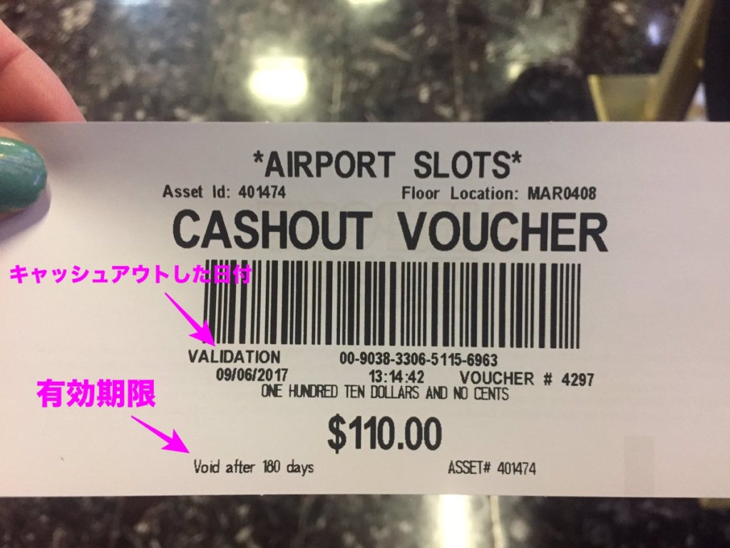 バウチャーの左下のVoid after 180 daysとあります。キャッシュアウトした日から180日後に失効しますという意味です。
