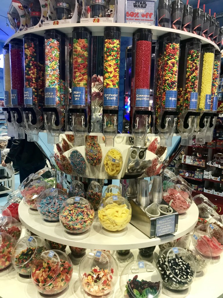 入ってみると、アメリカのキャンディやチョコレートが所狭しと並べられ、セルフで好きな分だけ購入できます。