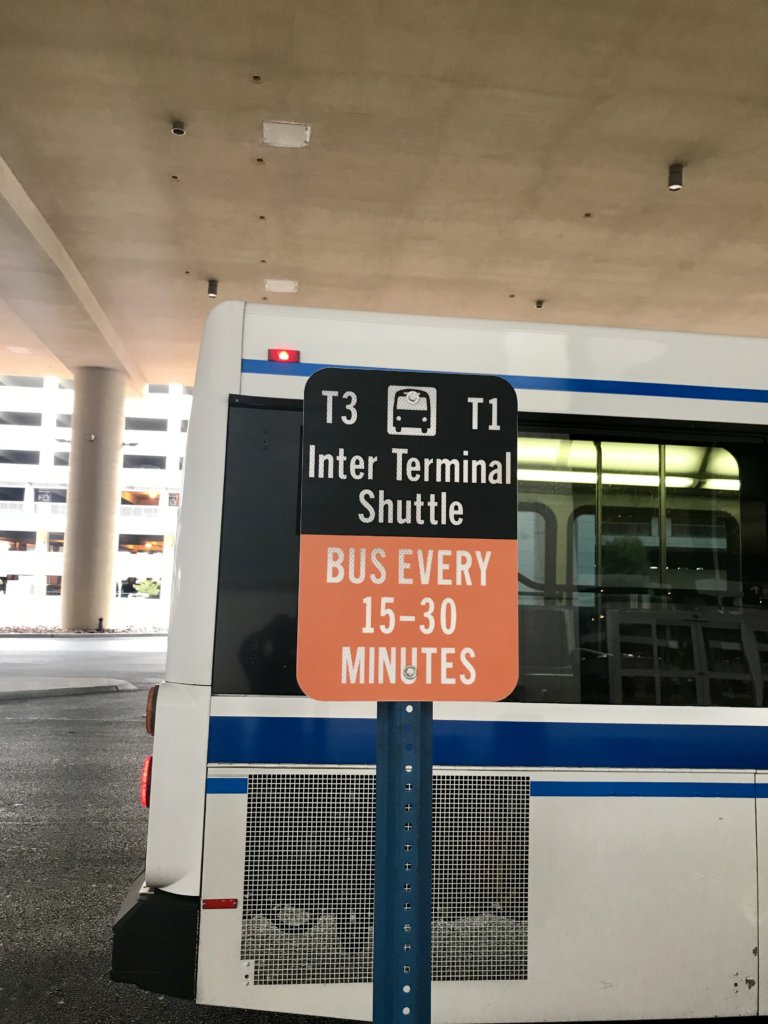 シャトルバスは15分から20分間隔で第1ターミナルと第3ターミナルを交互に移動します。