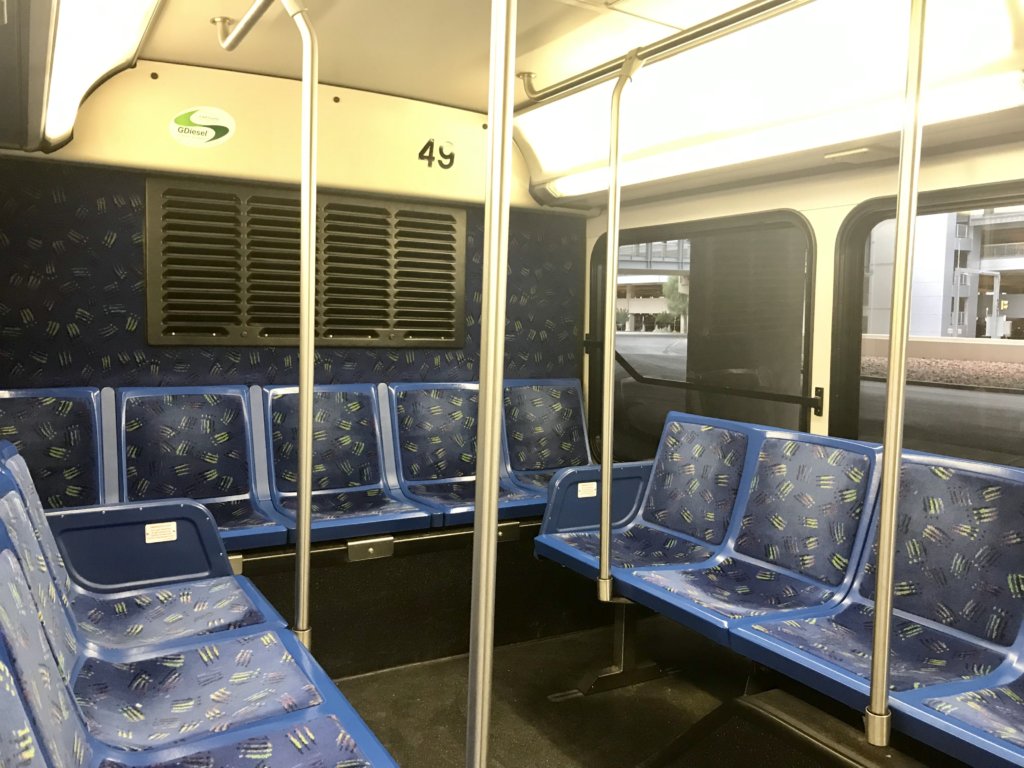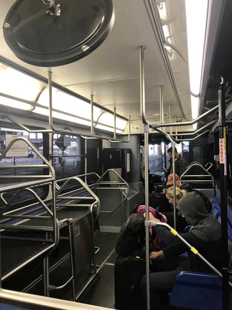 バス車内後部座席。シートの大きさは日本のバスとあまり変わりません。