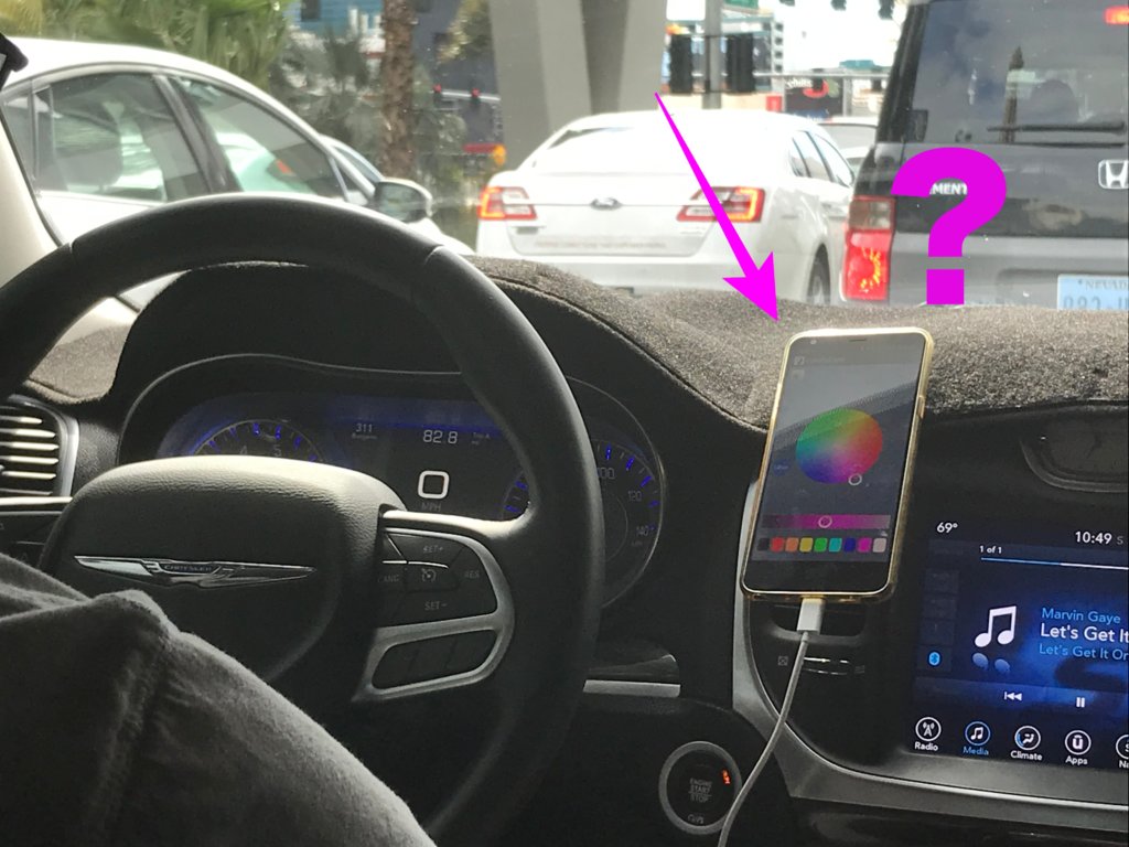 「ハンドル横のスマホは何ですか?いろんなカラーが見えますが。」