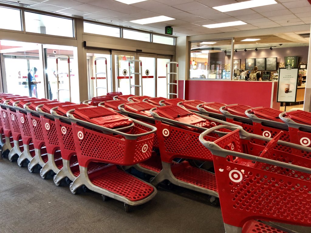 ターゲットは日本と同じ大きさのプラスチック製買い物かごがありますが、大半のアメリカンスーパーは大型カートで買い物するようになっています。