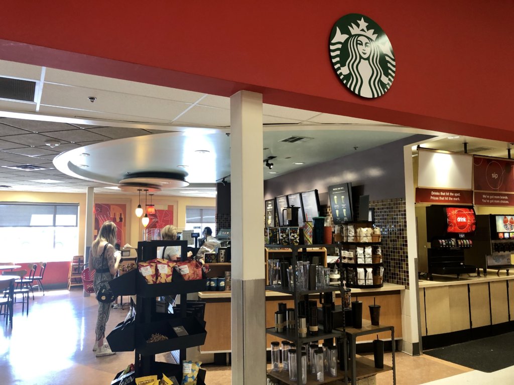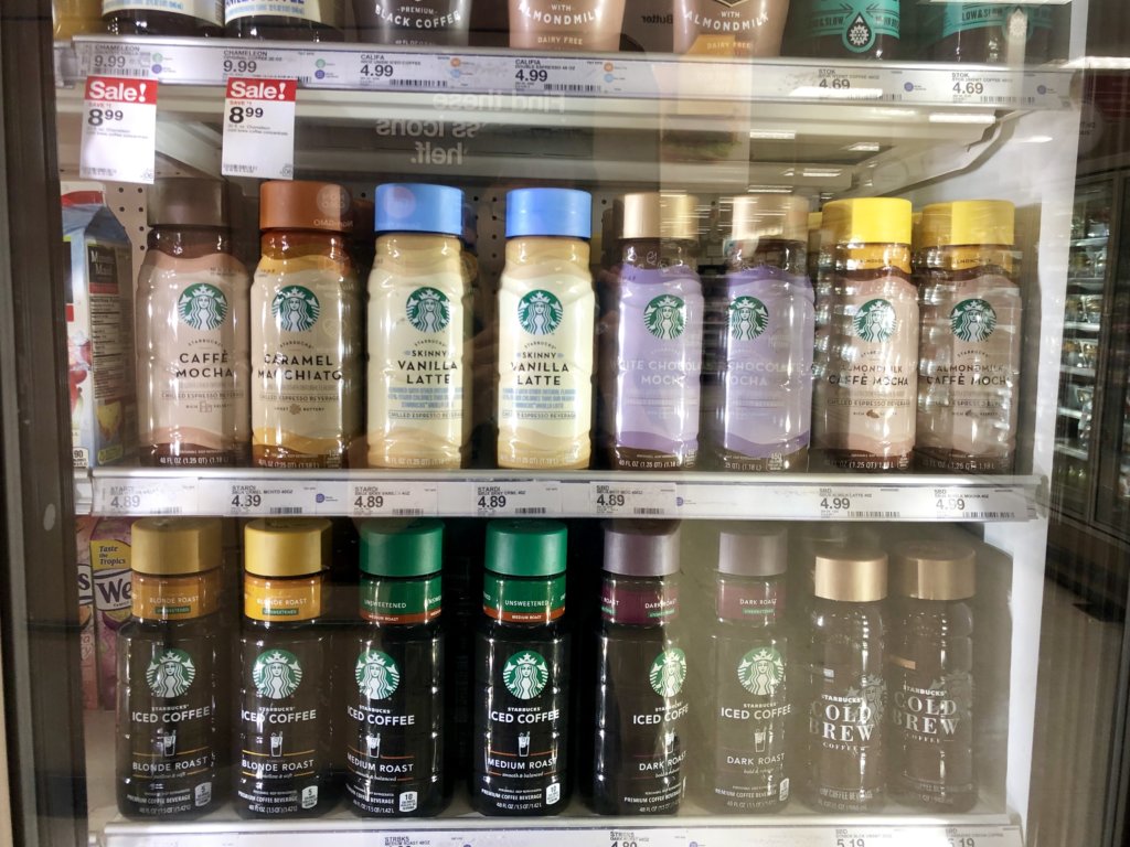 アメリカならではと言えばスタバのコーヒー。甘いモカやラテは上段に。下段はアイスコーヒーです。