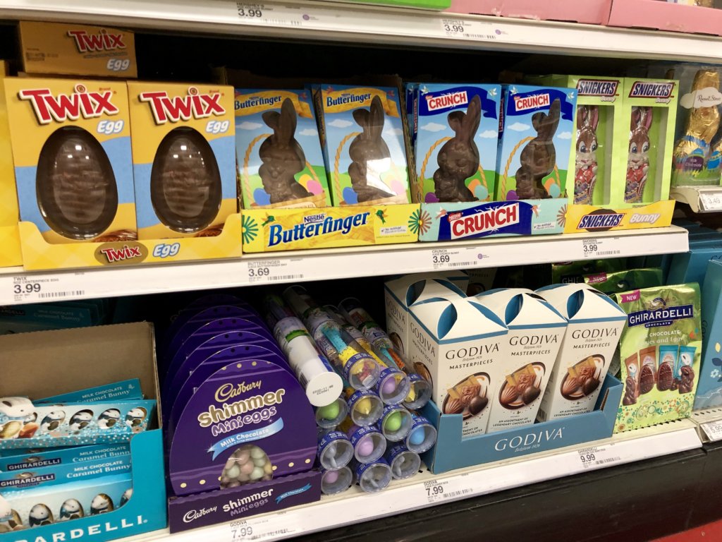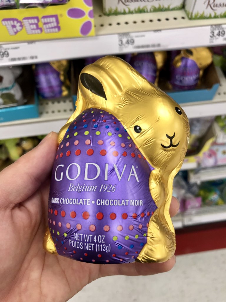 右はイースター限定のゴディバチョコ。ゴディバチョコはアメリカでもいろんなスーパーやコンビニで売っています。