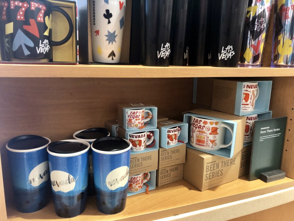 スタバ店内はあまり広くありませんが、ここではラスベガス限定のタンブラーやマグカップが販売されています。