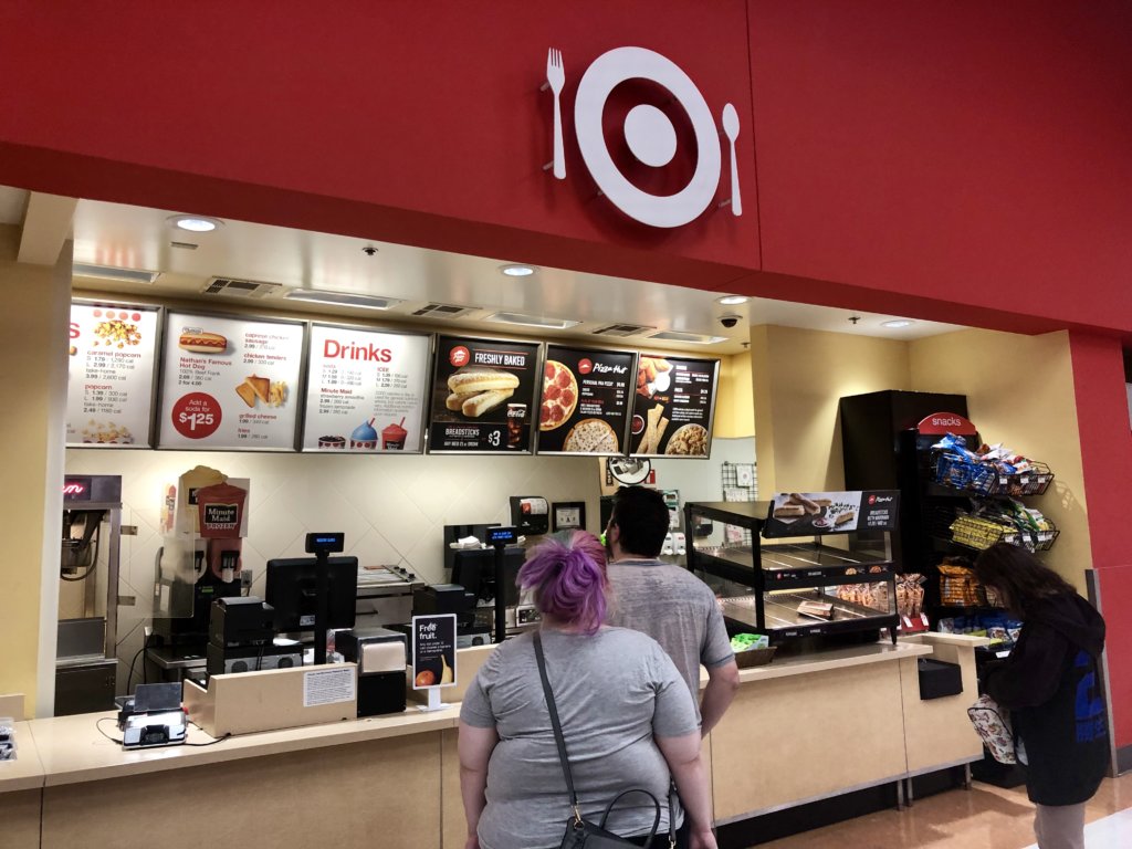 スタバのすぐとなりにピザやホットドッグが買えるお店がありました、外観はターゲットオリジナルのお店のようですが、メニューを見るとピザはピザハット、ホットドッグはNathan’sです。