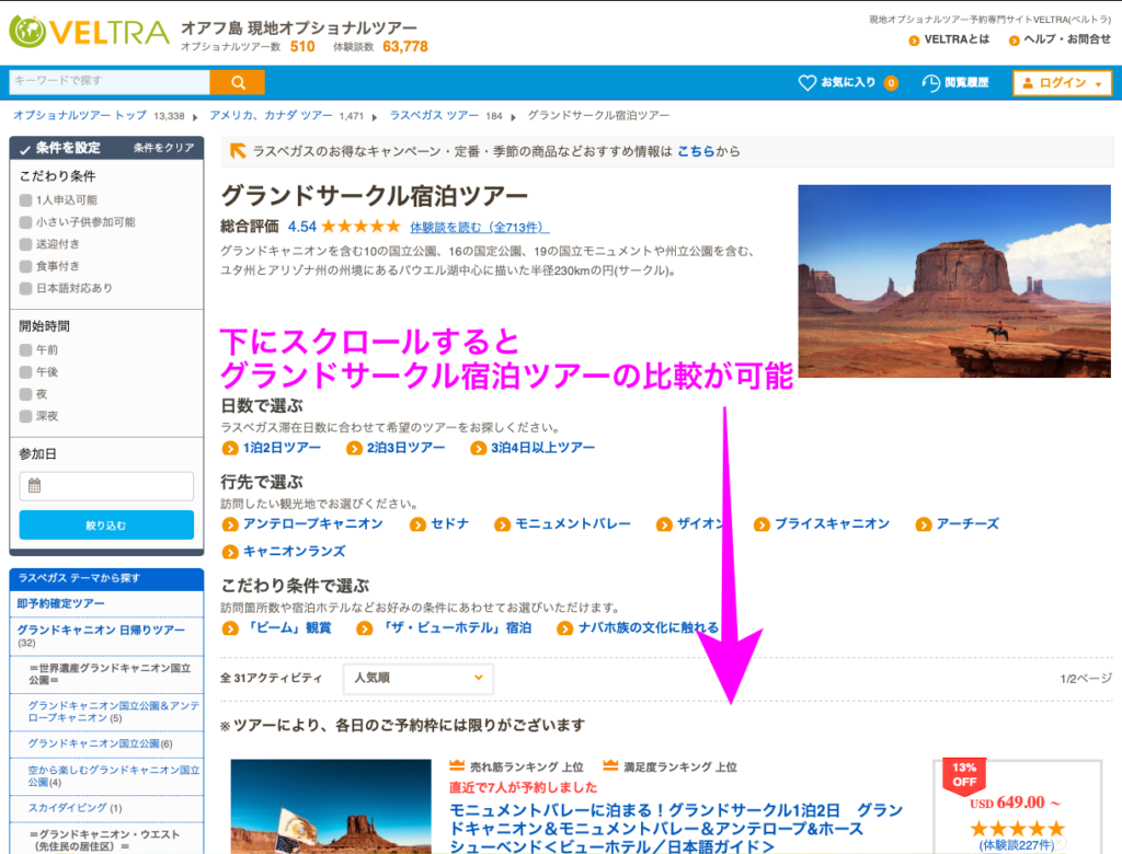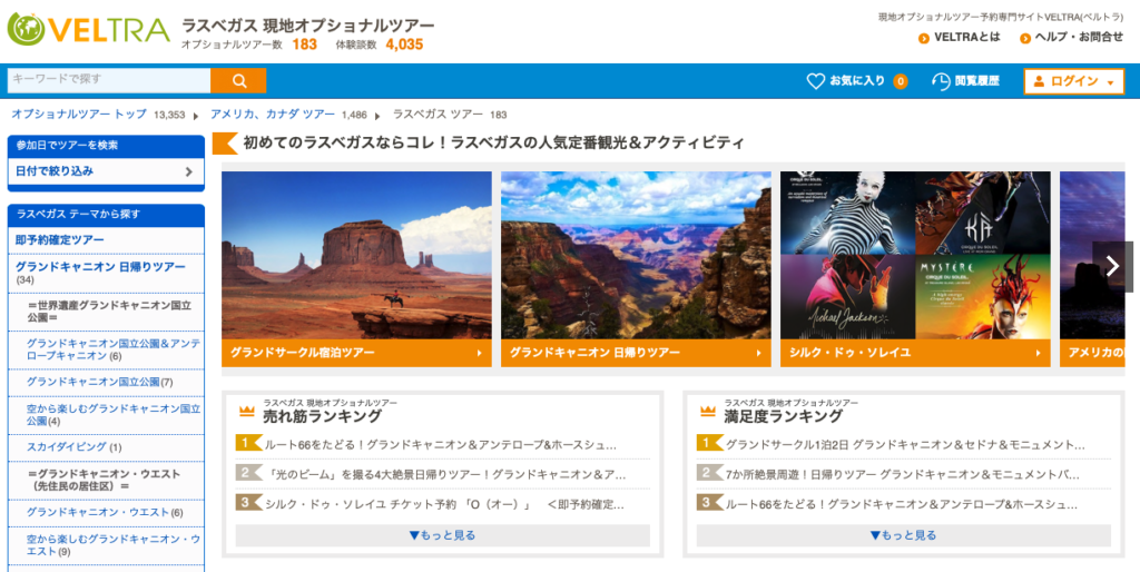 まずはベルトラの公式サイトからラスベガスのページに移動します。