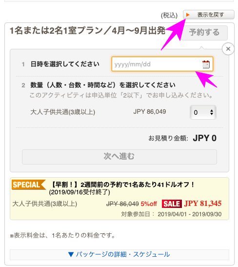 ツアーによっては早めの予約で割引が適用されます(早割)