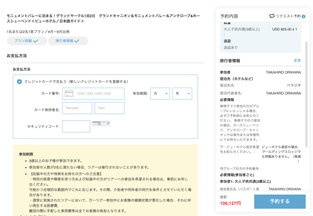 名前の入力はパスポートに明記されたそのままの名前を入力してください。