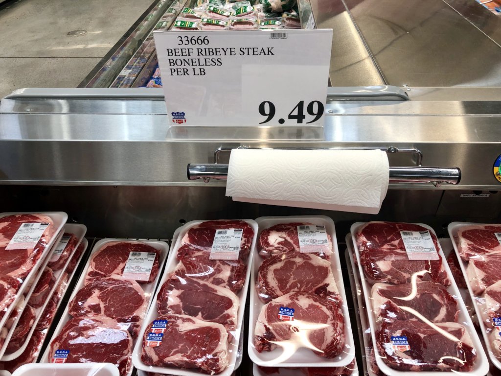 アメリカのコストコは肉ばっかりおいています。こちらはステーキ用のリブアイ肉です。