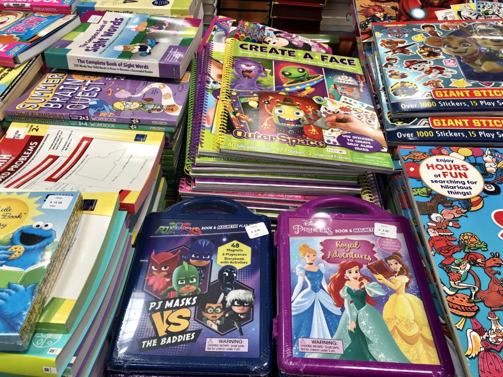人気作から子供用絵本までたくさんの書籍が平積みで販売されていました。