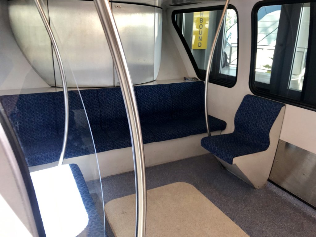 モノレールの車内は清潔です。シートはクッション性がないので固いです。