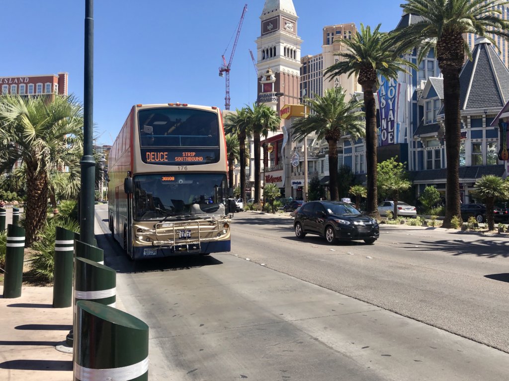 ストリップエリア内を運行するバスは観光客中心のため安全上問題ありません。