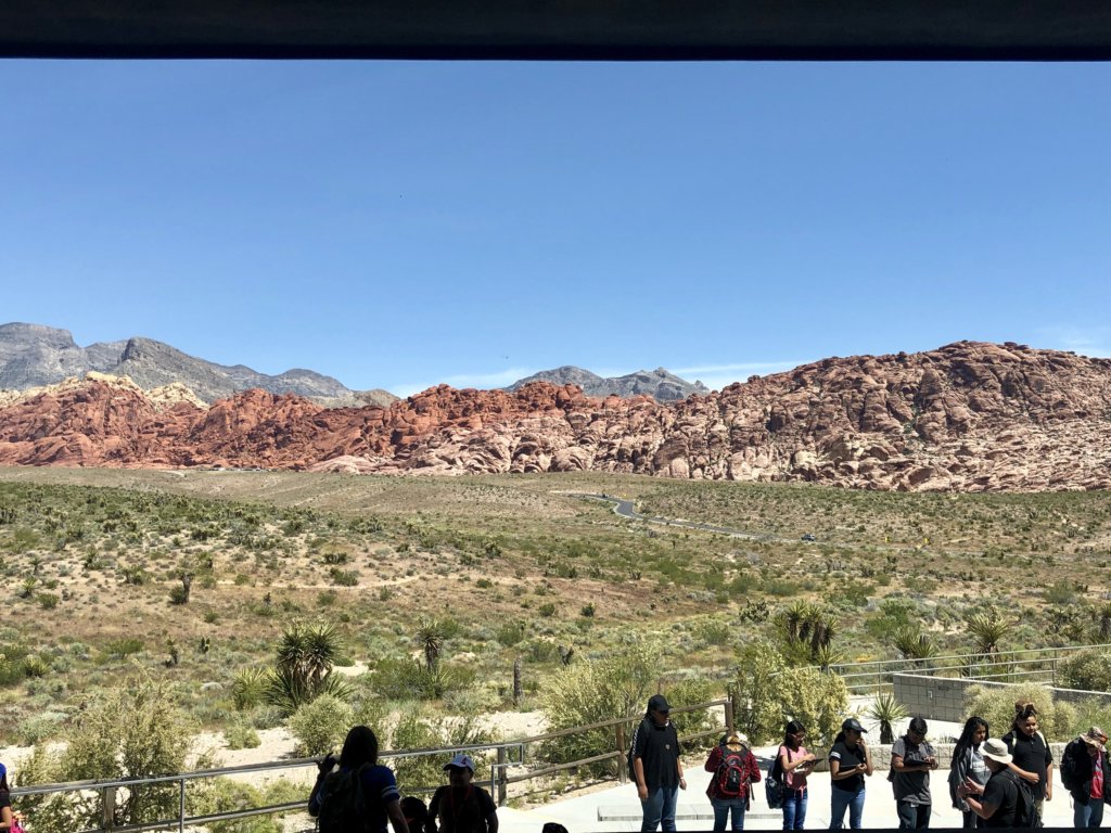 ビジターセンターの展望エリアからレッドロックキャニオンの1番良いポイントを眺めることができます。