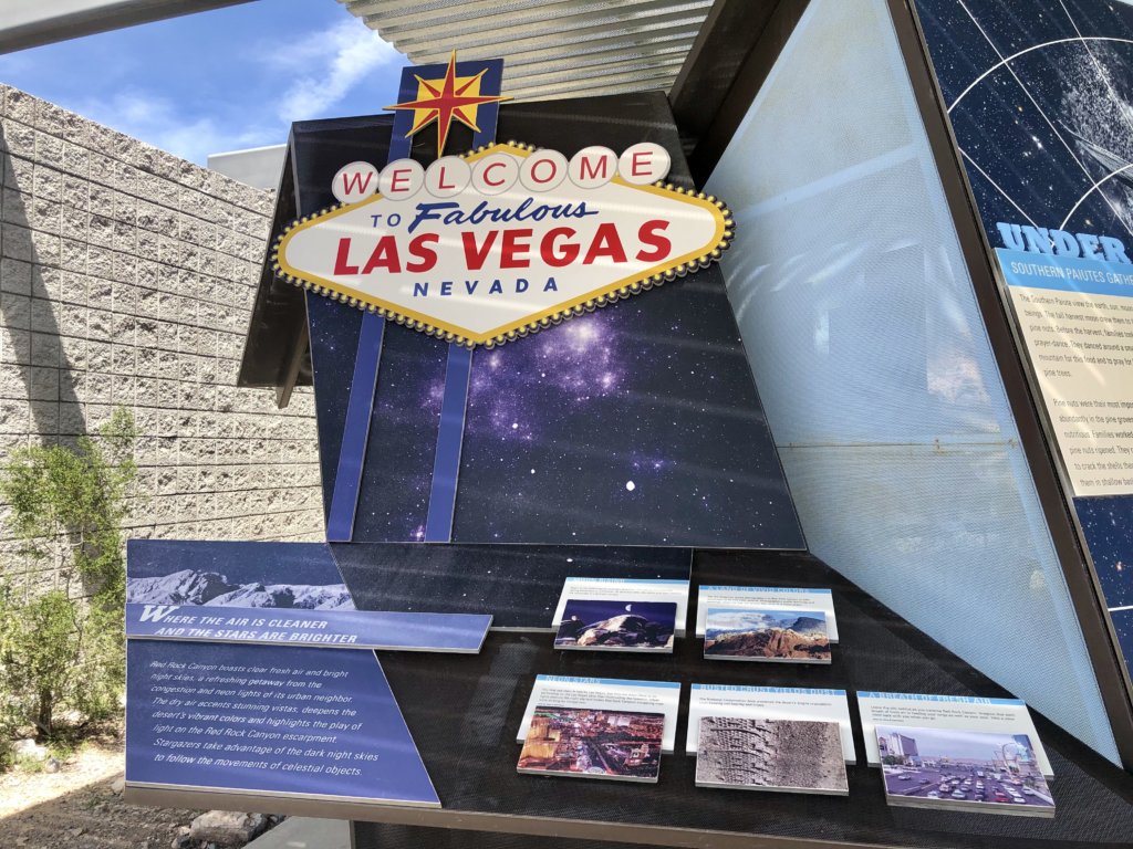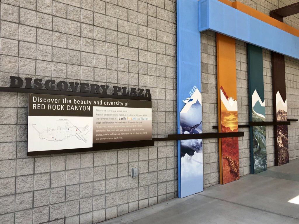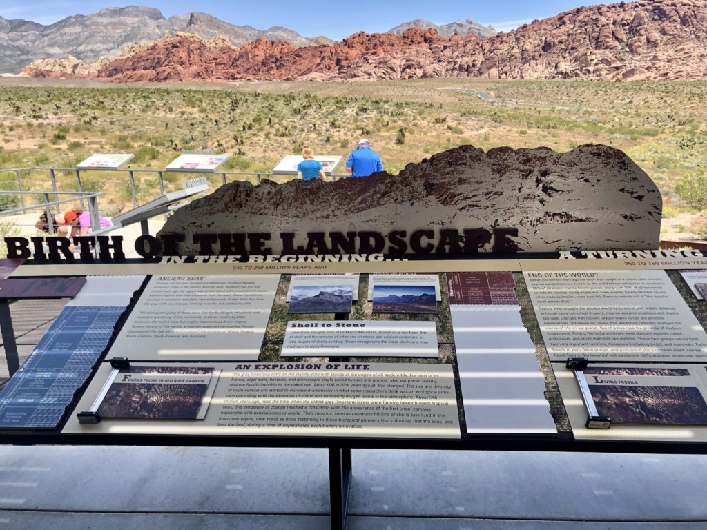 館内外にはレッドロックキャニオンやラスベガスの砂漠・自然を説明する展示パネルがあります。