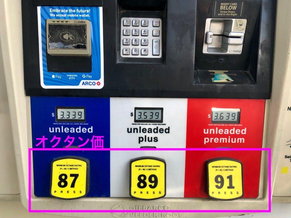 ↑の車はMINIMUM OCTANE RATING 91とあります。
