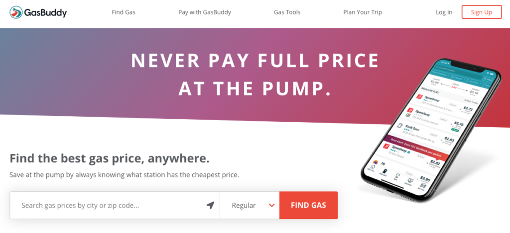 ↑こちらはスマホ画面でみたGas Buddy.comのページです。