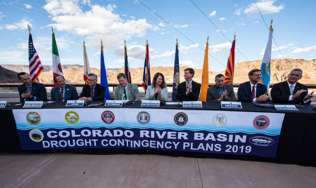 近い将来予想されるコロラド川の干ばつに供え、コロラド川が通る7つの州(ネバダ州、コロラド州、ニューメキシコ州、ユタ州、ワイオミング州、アリゾナ州、カリフォルニア州)の代表が集い、新しい水の使用制限に関する合意をしました。