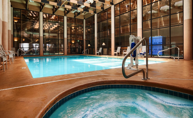 一年中オープンしているプール(奥)とジャクジー(手前)。