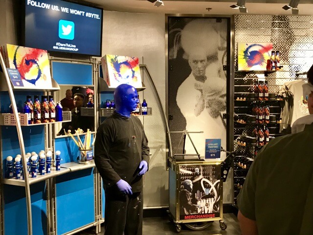 と、思いきやシアター隣のグッズコーナーで1人だけブルーマン登場。