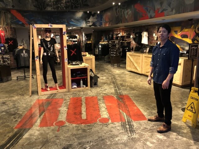 すでにランの世界観があり、スプレーの落書きアートやフェイクのタトゥー体験ができるブースもあります。