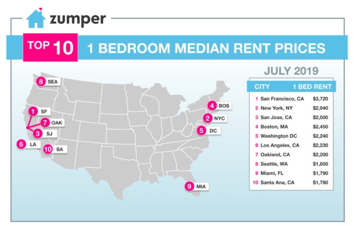 アメリカは物価が高いという1つの指標となる家賃の相場がZUMPERというサイトで発表されました。