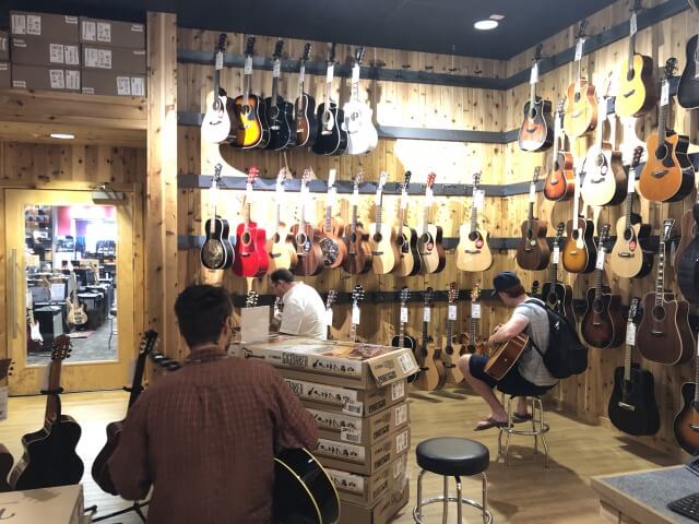 平日の昼間でしたが、観光客の割合も多く、気軽にギター試奏をしている人が多かったです。
