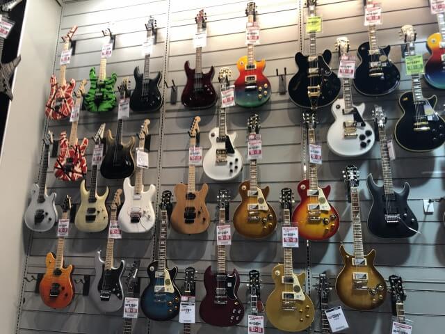 ですが、ギターセンターと比べギターを正面向きで展示しスペースが沢山あります。