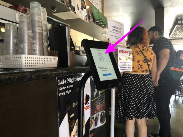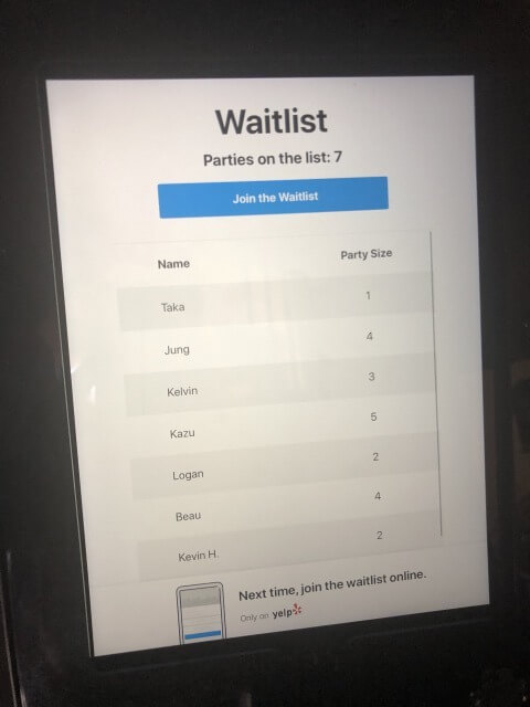 お店の入り口で順番待ちの手続き(電子)をします。
