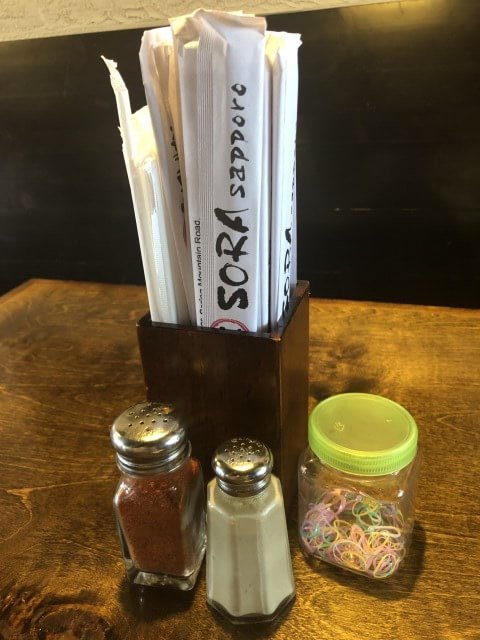 カウンターにあったのは唐辛子(一味)とコショウのみ。