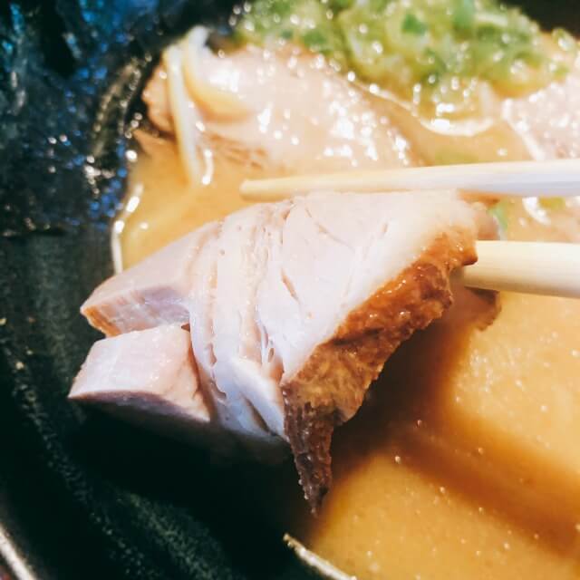 食べる前から濃厚スープとチャーシューのインパクトが凄まじいです。