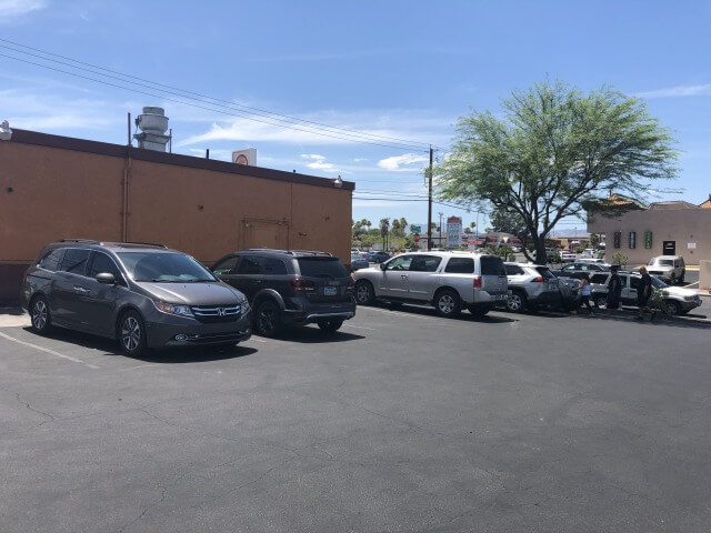 外は炎天下(40℃)なので夏場は車の中でまっている人も多いです。