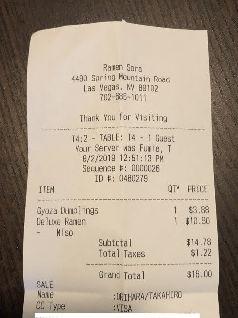 ラーメン+餃子で16ドルはストリップのレストランと比べると割安。