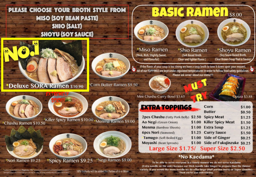 ラーメン空はラスベガスでも多くの固定ファンをを持つ人気店です。