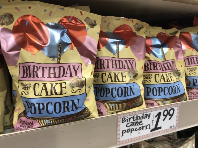パッケージがかわいくてハッピなー気分にさせるバースデーケーキ味のポップコーン。