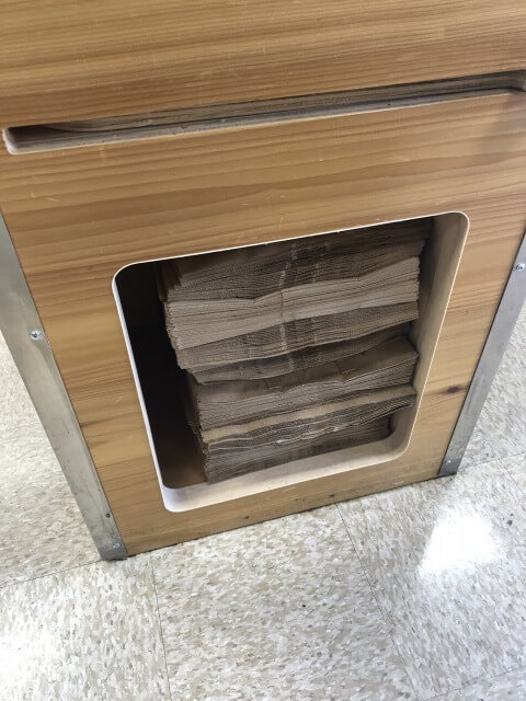 買い物の際にレジで紙袋をもらえます。