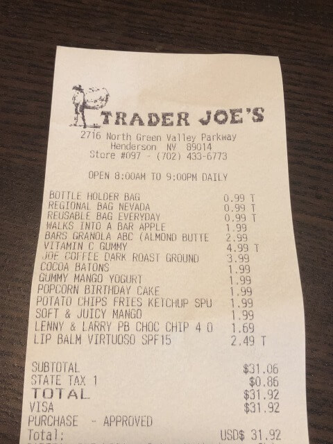 ラスベガストレーダージョーズ実際に買ったもの