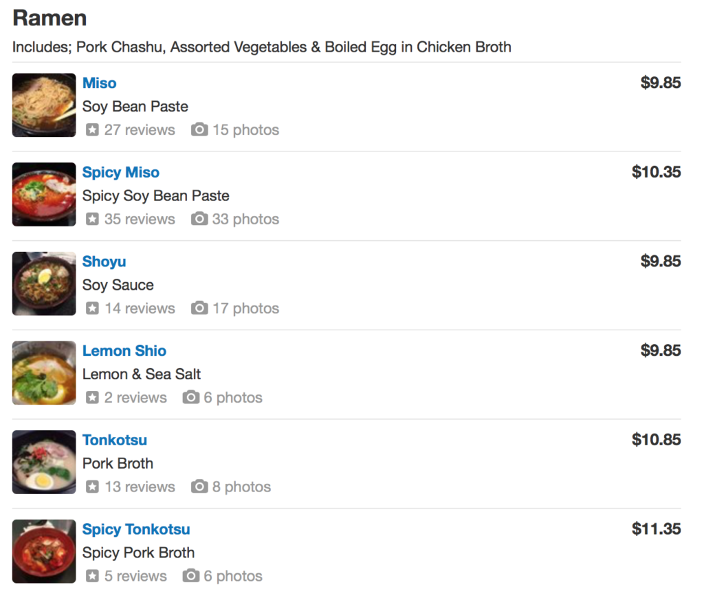 | ★★★★★☆☆(5.0) | Sojoラーメン | 8.95〜12.95ドル |