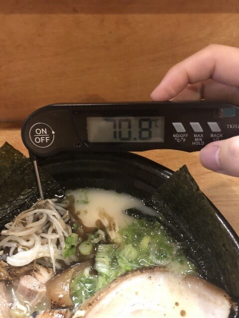 ちなみにラーメンの適温は70℃〜80℃といわれていますので、福耳ラーメンは70.8℃でクリアです。
