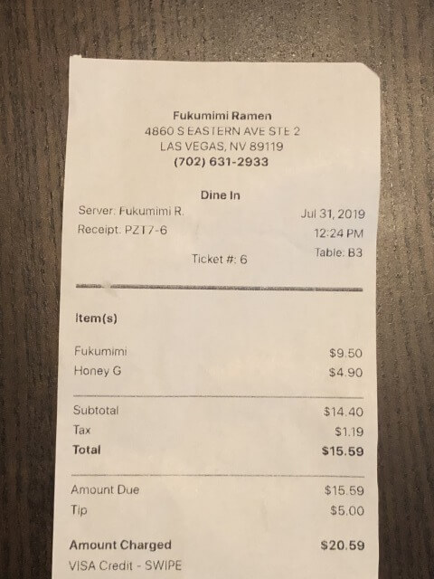 お店で一番高いラーメンを注文したので、15ドルを超えましたが、アメリカの飲食店の中ではそれでも安い方になります。