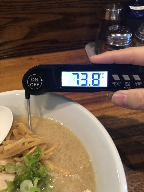 ちなみにラーメンの適温は70℃〜80℃といわれていますので、Montaラーメンは73.8℃でクリアです。