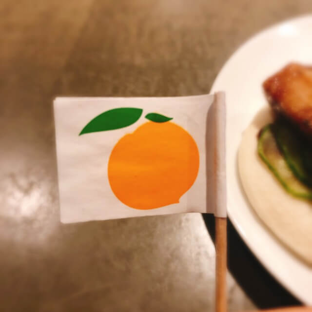 何か旗がささっていますが、このマークはmomofukuの看板ロゴにもつかわれているピーチ。