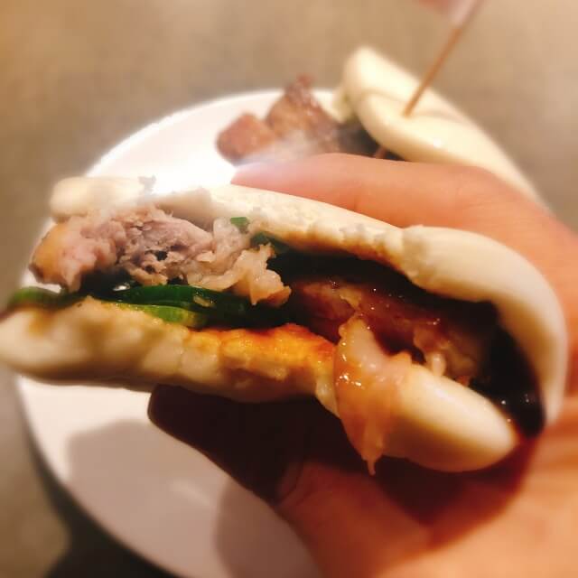momofukuのポークベリーバンはお肉がはみ出しているので、少々食べづらかったです。