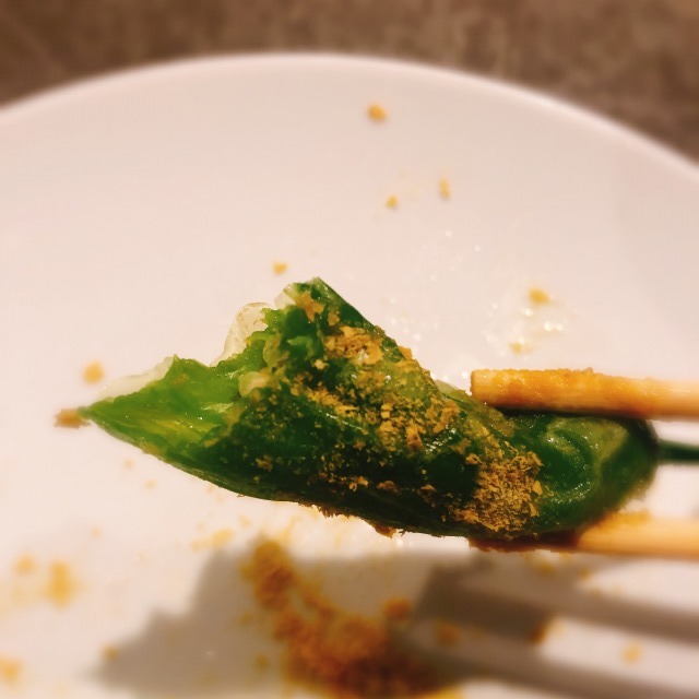 ししとうの上にかかっているものは、スモークドソルトライムだそうです。