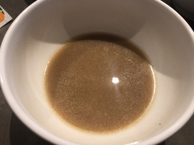 シェフと会話が弾み、私がラスベガス中のラーメンを食べ歩いている説明をすると、Chickpea Ramenのスープを飲ませてくれました。